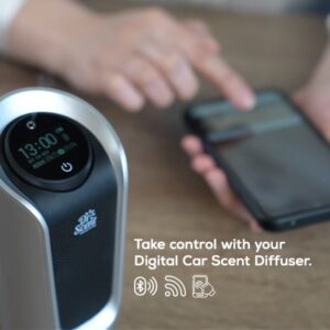 Verleihen Sie Ihrem Auto mit dem digitalen Auto-Duftdiffusor von Dr. Scent einen luxuriösen Duft. Dank seines eleganten schwarz-silbernen Designs und der intelligenten Duftsteuerung wird jede Fahrt zu einem erfrischenden und stilvollen Erlebnis.